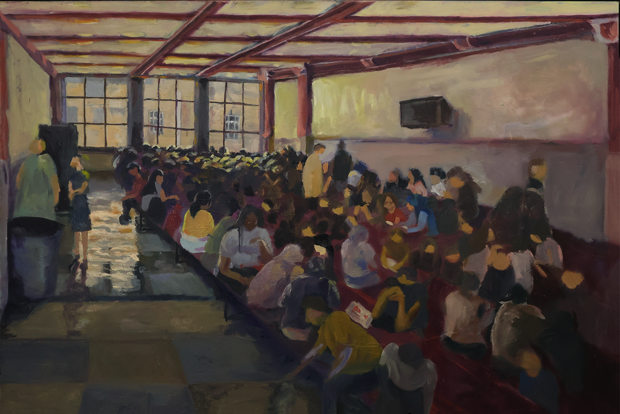 My high school cafeteria holds four years of faint memories of many acquaintances. I painted this piece at the end of my Junior year. It was my first time working on a larger life oil painting piece, and the process involved a lot of staying in the cafeteria all day only to get a little done. However, by the time I finished the painting, the sense of fulfillment makes the hard work fun and worthwhile. The same can be said about my high school experience.